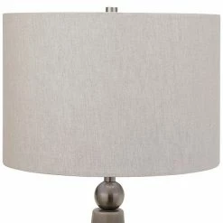 - Dove gray ceramic table lamp features uneven, wavy lines that give uniqueness to piece