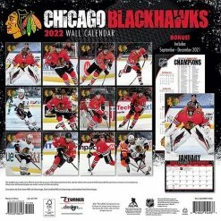 Celebrate the Chicago Blackhawks year-round with this 2022 wall calendar. Featuring graphics of the team in action, this calendar is the perfect way to add Chicago Blackhawks spirit to every month of the year.