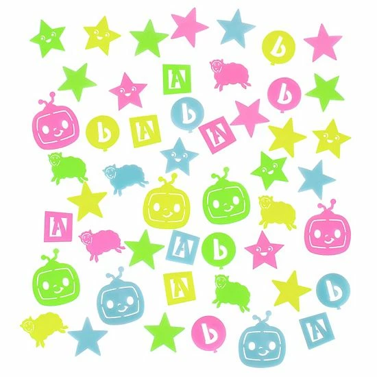 Let the world of CoComelon fill your dreams with these glow in the dark stars! Inspired by the nursery rhymes from the educational YouTube series, CoComelon, this set includes 50 stickers in six different shapes.