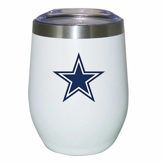 Perfect for kicking back and relaxing on Dallas Cowboys game days, this stemless tumbler features classic printed team graphics. When you can’t kick back, this tumbler comes complete with a lid so it’ll fit a busy lifestyle. Hot or cold beverages will taste great alongside your Dallas Cowboys pride!