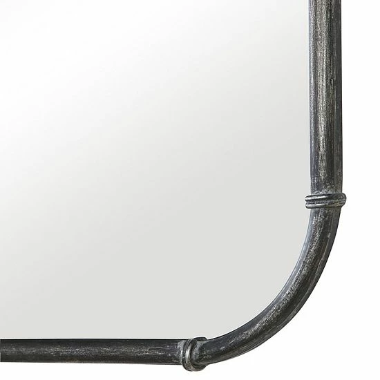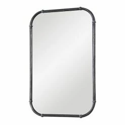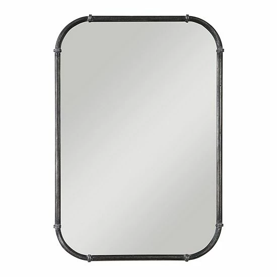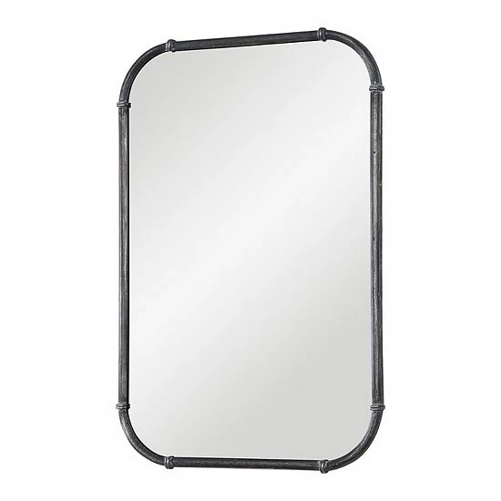 The appearance of this lovely wall mirror is softened by rounded corners and improved by a rustic gray metal finish!
