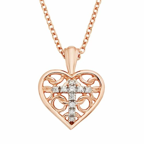 Showcasing your love and faith is easy when you wear this stunning diamond heart and cross pendant. Comes in a gift box.