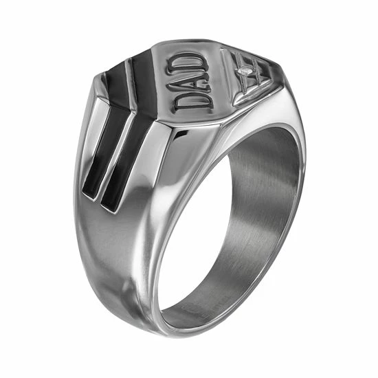 Featuring a diamond accent and black inlays, this men’s ring is a handsome choice for your dad.
