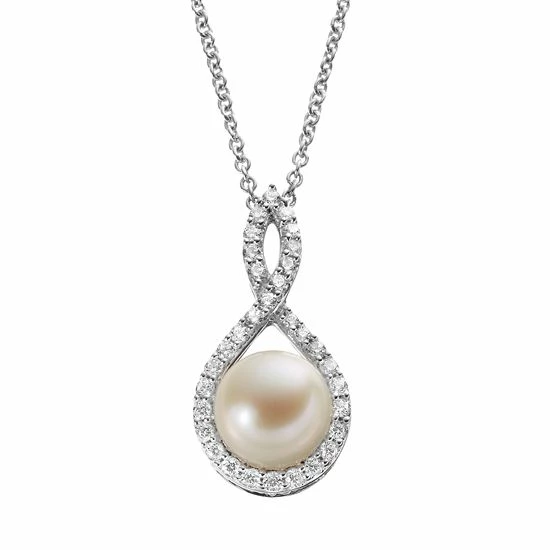 With a beautiful dyed freshwater cultured pearl encompassed by round-cut cubic zirconia accents, this sterling silver teardrop pendant necklace dazzles from every angle.