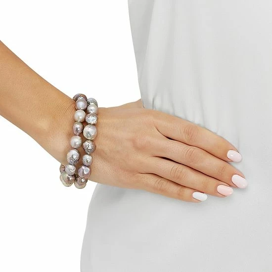 This dyed gray ming pearl bracelet set adds an elegant look to any outfit.