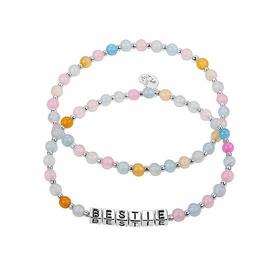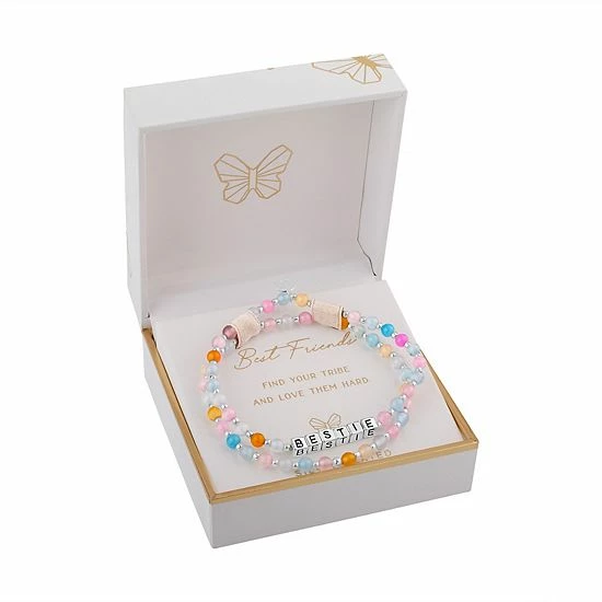 Featuring multicolored pastel beads, this fine silver plated “Bestie” bracelet is a stylish tribute to your best friend.