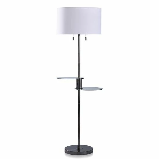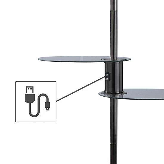 Instantly refresh your space with this Floor Lamp with 2 Tier Convenient Swivel Glass Tables.