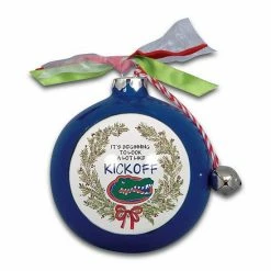 Combine your holiday spirit and your love of the Florida Gators with this Wreath Kickoff ornament. The beautiful painted graphics feature your team’s logo surrounded by a festive wreath. The ribbon and bell embellishments add a touch of style to this ready-to-hang ornament.