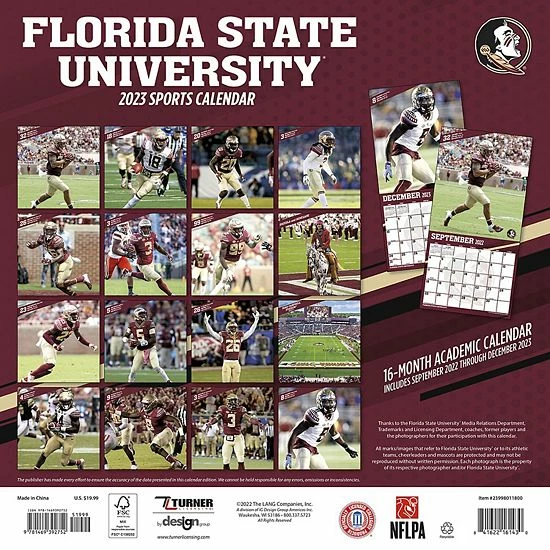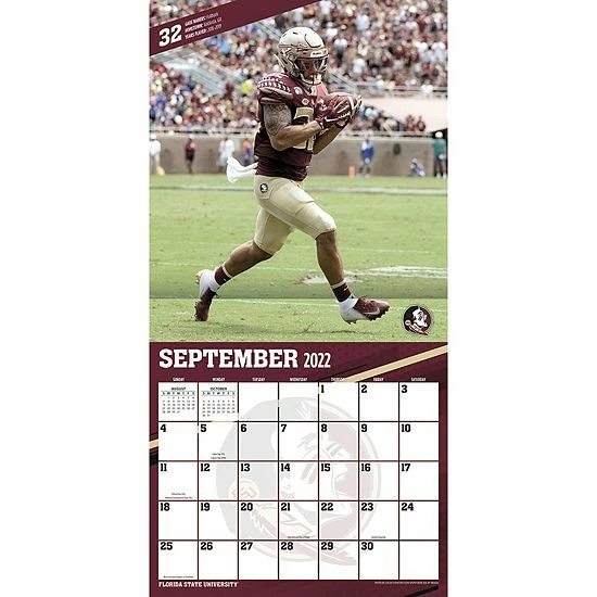 Every day is a good day to be part of the Florida State Seminoles family. This 2023 Team wall calendar is the ultimate fan’s way to keep track of things to do. With a daily dose of action-packed images from the Florida State Seminoles, this calendar ensures you’re taking on the day prepared and full of team spirit.