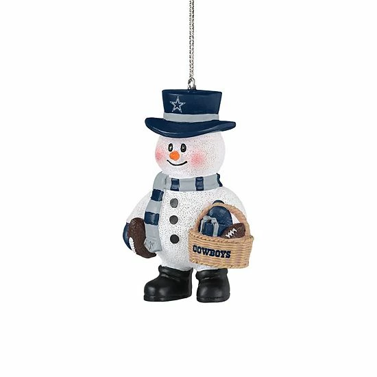 Bring some holiday spirit to your Dallas Cowboys collection with this Snowman Basket ornament from FOCO. The painted design and printed Dallas Cowboys graphics add a jolly and sporty touch to your tree. This ornament comes ready to hang and is a great way to show your devotion during the festive season.