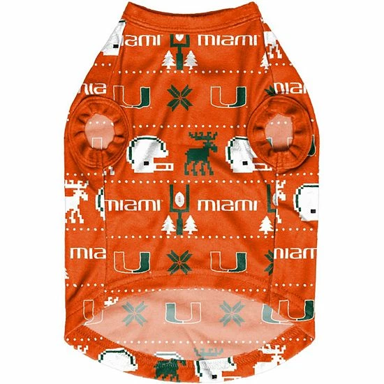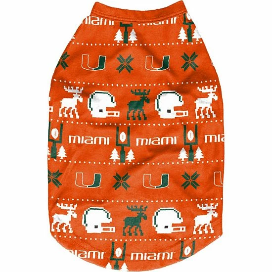 Get your dog holiday ready in this adorable Miami Hurricanes Printed sweater from FOCO. Your furry friend will love supporting the Miami Hurricanes alongside you with this sweater’s fun team graphics. Its seasonal theme makes this sweater the perfect gift for dog lovers.