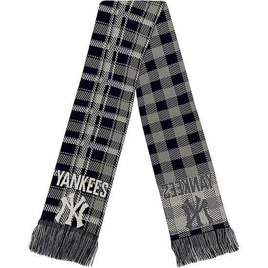 Bring New York Yankees cheer to any outfit with this Plaid Color Block scarf from FOCO. It features a classic pattern in team colors and the official New York Yankees logo. Matching fringed ends also round out the traditional look of this cozy accessory.