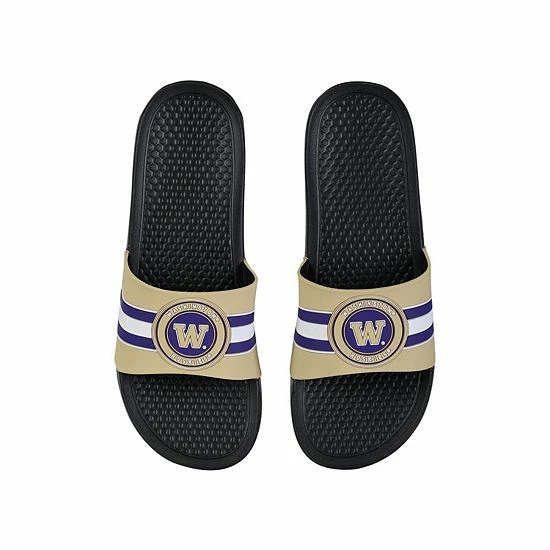 Keep your feet cool in hot weather by wearing these Washington Huskies Stripe Raised slide sandals from FOCO. They feature vivid Washington Huskies graphics, and the slip-on style makes them easy to use. The textured soles also help prevent you from slipping.