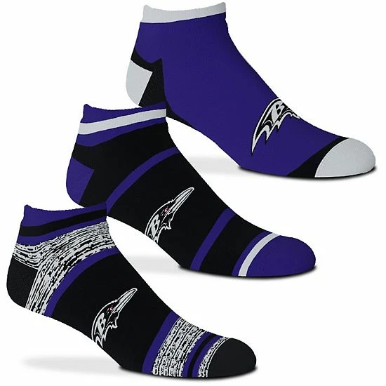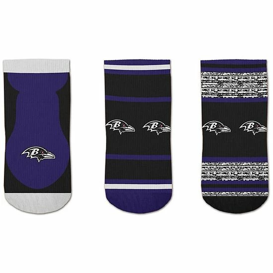 Add a new piece to your game day look with these Baltimore Ravens Cash ankle socks from For Bare Feet. These come in a pack of three and each of them show off Baltimore Ravens colors and graphics. Combining comfort and team spirit with ease, these socks are a must-have for any passionate supporter.