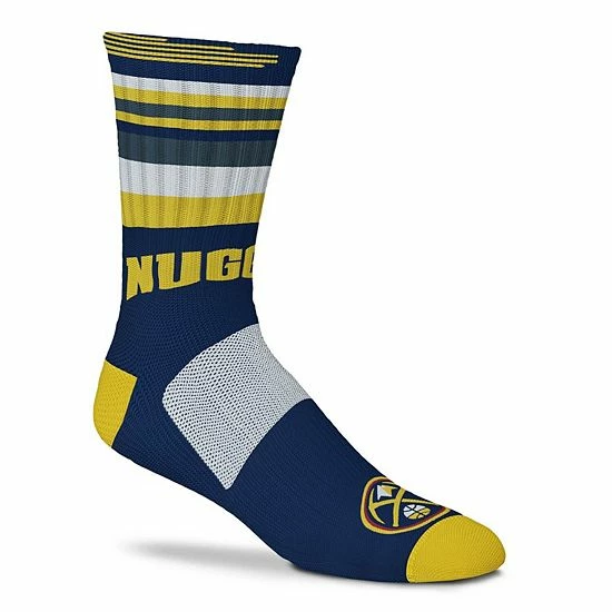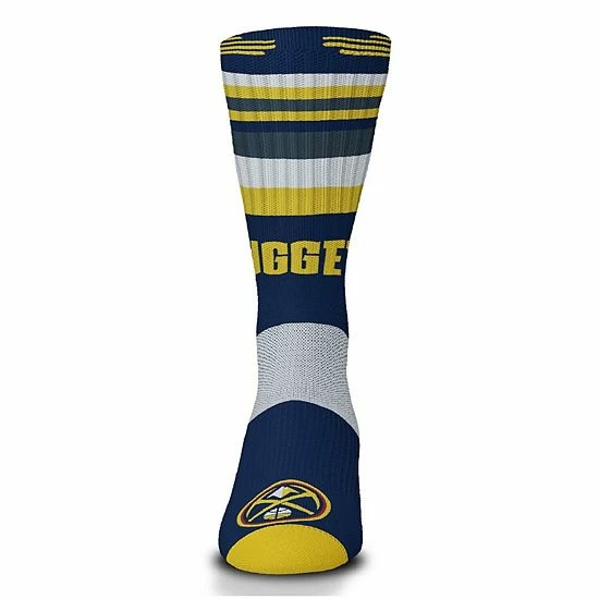 Make sure every step you take on game day is full of Denver Nuggets pride by wearing these spirited Rave crew socks from For Bare Feet. Their striped design and Denver Nuggets graphics highlight your passion for your favorite team. Each sock is made with a soft blend of fabrics for a comfortable wear for every game.