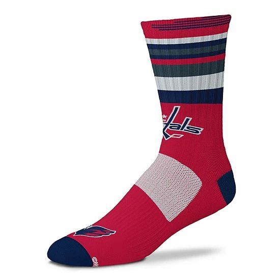 Make sure every step you take on game day is full of Washington Capitals pride by wearing these spirited Rave crew socks from For Bare Feet. Their striped design and Washington Capitals graphics highlight your passion for your favorite team. Each sock is made with a soft blend of fabrics for a comfortable wear for every game.