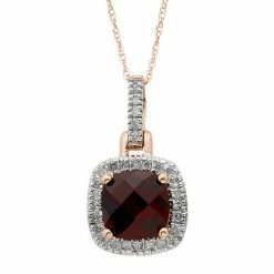 Elegantly appointed with a cushion-cut garnet center stone set within a halo motif, this beautiful 10k gold pendant is sure to impress.