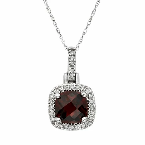 A genuine garnet gemstone surrounded by shimmering diamonds gives this halo pendant unsurpassed beauty.