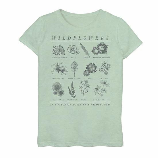 She’ll love showing off her style with this girls’ Wildflowers In A Field Of Roses Be A Wildflower Sketch Graphic Tee.