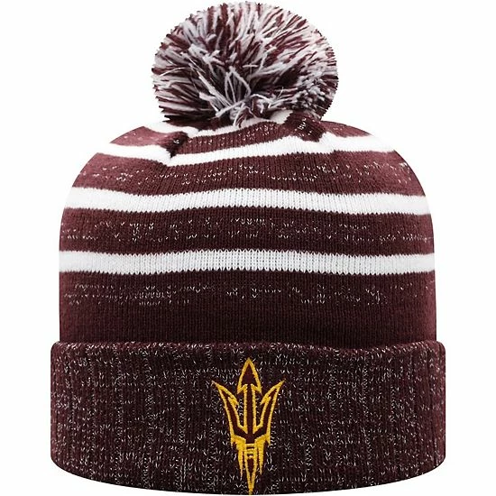 Add a pop of Arizona State Sun Devils color to your young fan’s winter wardrobe with this Shimmering cuffed knit hat from Top of the World. It features the embroidered Arizona State Sun Devils logo and metallic threading for a touch of sparkle. A matching pom completes the vibrant look of this comfy cap.