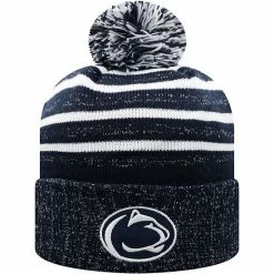Add a pop of Penn State Nittany Lions color to your young fan’s winter wardrobe with this Shimmering cuffed knit hat from Top of the World. It features the Penn State Nittany Lions logo in raised embroidery and metallic threading for a touch of sparkle. A matching pom completes the vibrant look of this comfy cap.