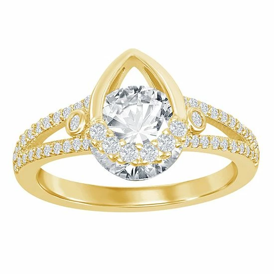 This beautiful gold tone sterling silver teardrop and cubic zirconia ring features a dazzling design that you will love to showcase.
