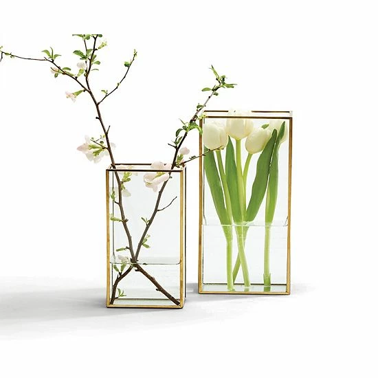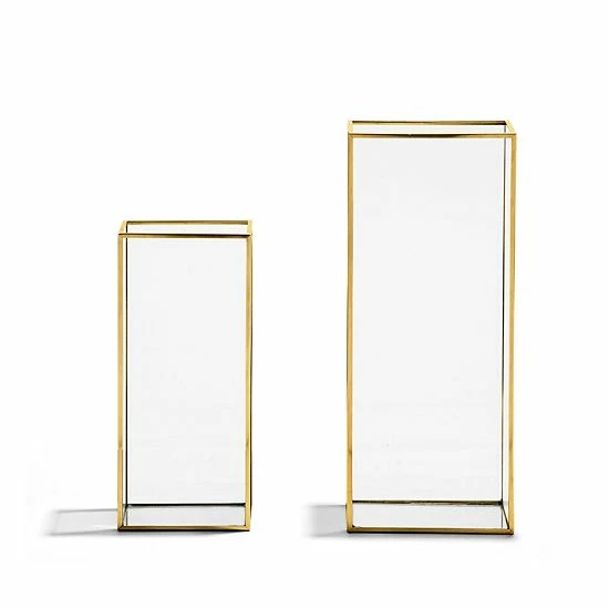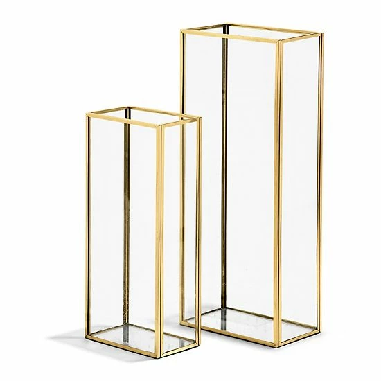 Display your flowers and greenery from all angles with this gorgeous gold trim square vase 2-piece set.