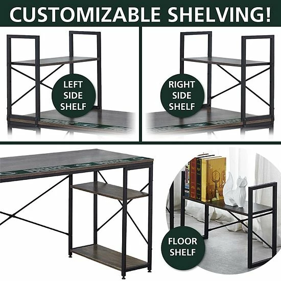 Customize your workspace like an all-star with this great space saving Green Bay Packers office desk with exclusive shelf design system.