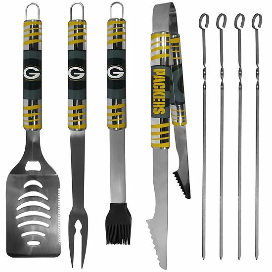 Conquer those tailgate parties, crush those weekend cookouts, with this pride-packed Green Bay Packers BBQ grill set.