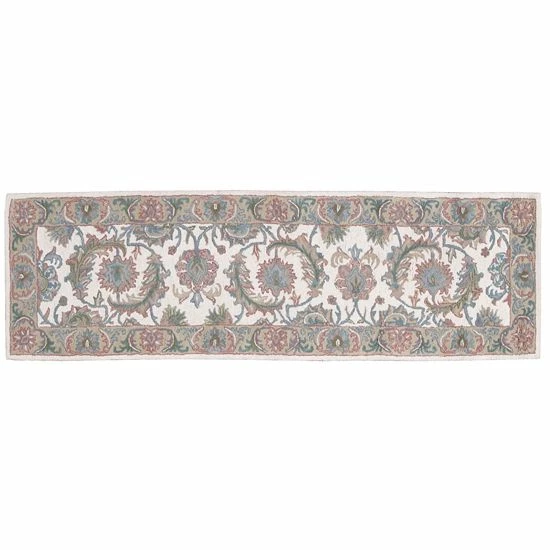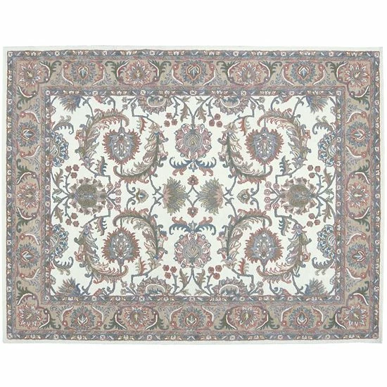 This India House rug exudes elegance. The intricate floral, vine and leaf pattern offers ornate sophistication to any room. In ivory/multi.