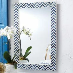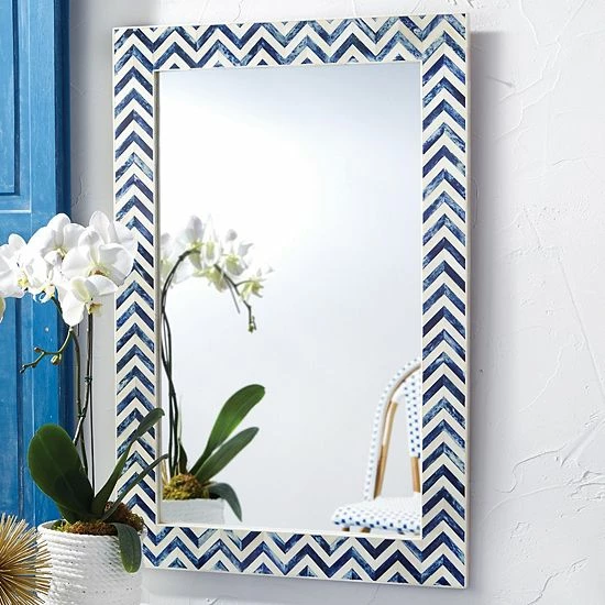 Hand-cut bone and glass alternate along the border of this eye-catching chevron mirror that’s suitable for any room in your home!