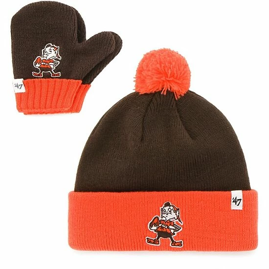 Lend a hand in blocking out the cold with this Cleveland Browns Bam Bam set from ’47. It features the Cleveland Browns logo in raised embroidery on the cuffed knit hat with a fluffy pom and matching pair of mittens. Plus, the stretch fit provides a snug feel for extra-cozy warmth.