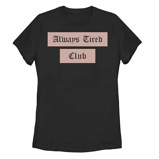 This juniors’ “always tired club” graphic tee offers comfortable style you’ll love.