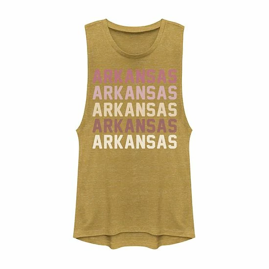 Show off your home state pride with this juniors’ Arkansas graphic muscle tank.