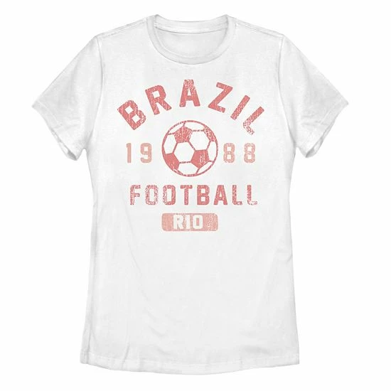 Trendy style abounds on this Juniors’ Brazil Football 1988 Rio Soccer Ball Symbol Graphic Tee.