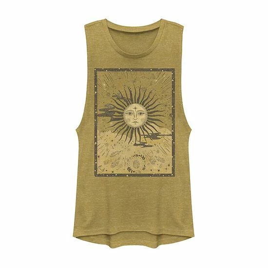 This Juniors’ Celestial Tarot Card Muscle Tee shows an awesome new graphic top in your future. In gold heather.