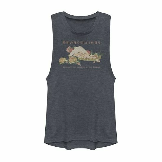Give her casual wardrobe the upgrade it’s been needing with this juniors’ “changing of the seasons” graphic muscle tee.