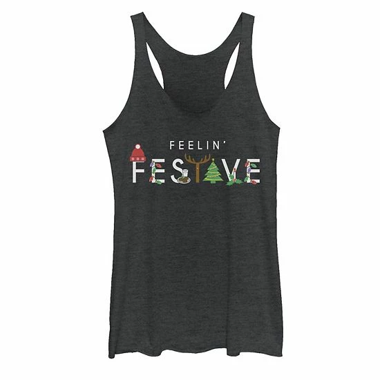 Get in the holiday spirit with this Juniors’ Christmas Feelin’ Festive Typographic Tank Top .