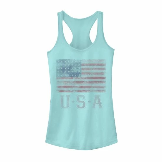 Put your patriotism on display with this juniors’ American flag graphic tank top.