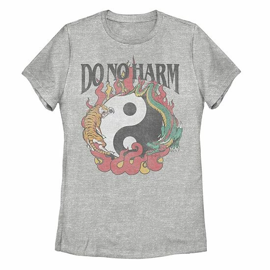 This awesome Juniors’ Do No Harm Dragon Tiger Yin Yang Graphic Tee is a must add to your graphic tee collection. In athletic heather.