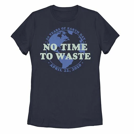 This inspiring juniors’ Earth Day graphic tee offers a friendly reminder that when it comes to saving the environment, there’s no time to waste. In navy.