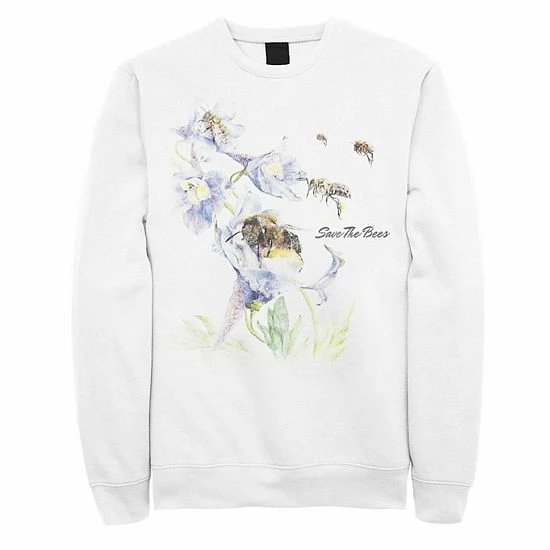 Show how much you care for Mother Earth and the bees with this lovely Juniors’ Earth Day “Save The Bees” Floral Fleece Sweatshirt. In white.