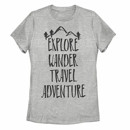 This awesome Juniors’ Explore Wander Travel Adventure Mountain Graphic Tee is perfect for any true adventurous spirit. In athletic heather.