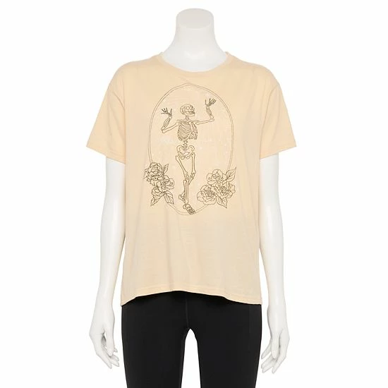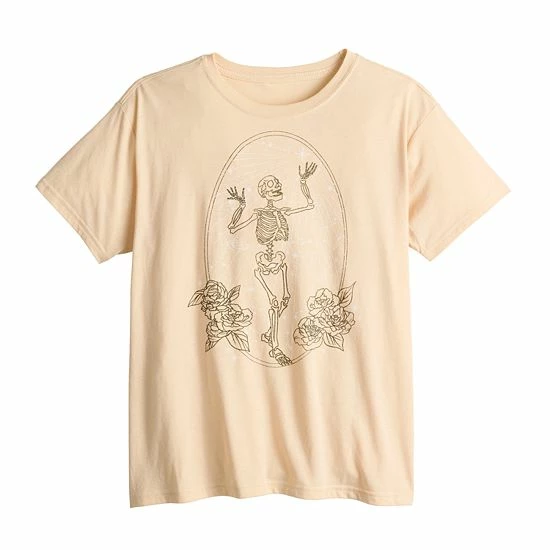 Reach for this cute skeleton juniors’ graphic tee, the perfect addition to your wardrobe!