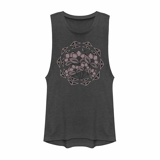 Trendy style abounds on this Juniors’ Geometric Boho Frame Around Flowers Graphic Muscle Tee.
