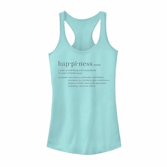 Spread happiness everywhere you go wearing this juniors’ tank top.