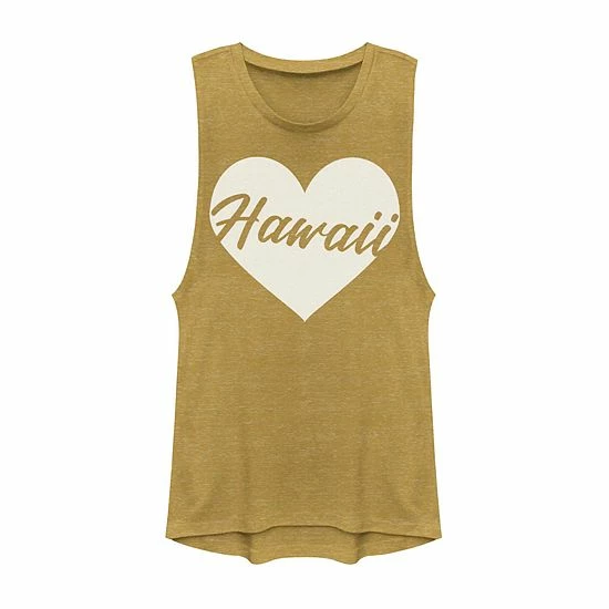 Display your love for the 50th state, wearing this juniors’ Hawaii heart graphic muscle tank top.