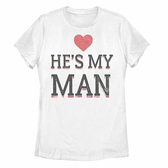 Let the world know exactly how you feel with this cute Juniors’ He’s My Man Distressed Text Heart Tee. In white.