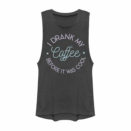 Top off your casual weekend look with this juniors’ “I drank my coffee before it was cool” muscle tee.