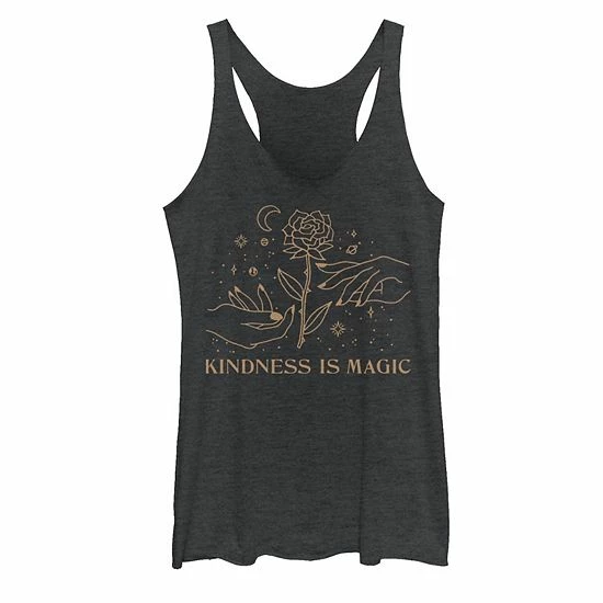 Spread a message of positivity with this juniors’ Kindness Is Magic tank top.